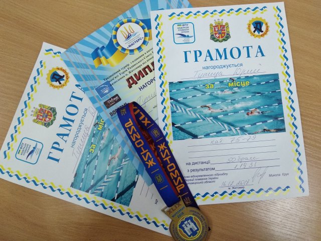 Старший викладач кафедри спорту та фітнесу Київського університету імені Бориса Грінченка Тупиця Юрій Іванович взяв участь у традиційному турнірі з плавання в категорії « Мастерс», присвяченому пам’яті Героя Радянського Союзу Ніни Сосніної та 75-й річниці визволення м. Житомира від німецько-фашистських загарбників.