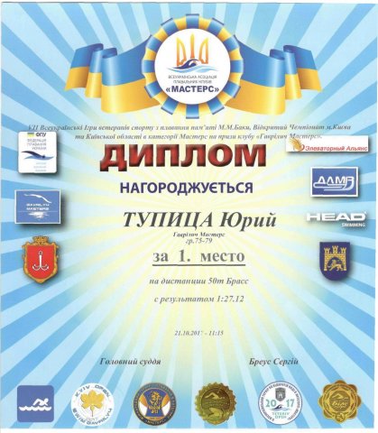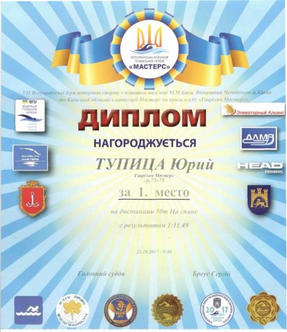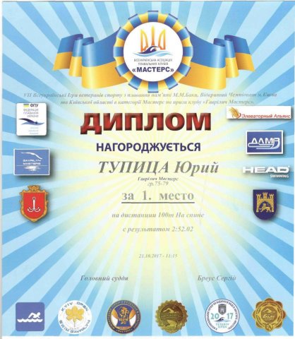 У жовтні 2017 року старший викладач кафедри спорту та фітнесу Київського університету імені Бориса Грінченка Тупиця Юрій Іванович здобув перемогу у VII Всеукраїнських іграх ветеранів спорту з плавання, присвячених пам’яті М.М.Баки, на дистанціях 50 м брасом, 50 м на спині та 100 м на спині. Бажаємо нових перемог!