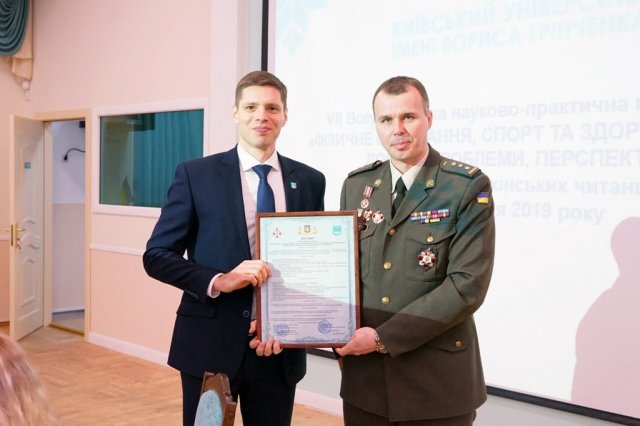 Активна співпраця між Київським університетом імені Бориса Грінченка та Національним університетом оборони України триває вже декілька років. Окрім традиційної участі в наукових конференціях, які проводять профільні спортивні підрозділи наших університетів, студенти Факультету здоров’я, фізичного виховання і спорту успішно отримують другу вищу освіту на базі Національного університету оборони України. Під час конференції представники закладів вищої освіти – декан Факультету здоров’я, фізичного виховання і спорту, кандидат наук з фізичного виховання і спорту, доцент Георгій Олегович Лопатенко та начальник Навчально-наукового інституту фізичної культури та спортивно-оздоровчих технологій Національного університету оборони України, кандидат педагогічних наук, доцент, майстер спорту України з регбі, полковник Олександр Валерійович Петрачков обмінялись угодою про співпрацю, підписану ректорами університетів.