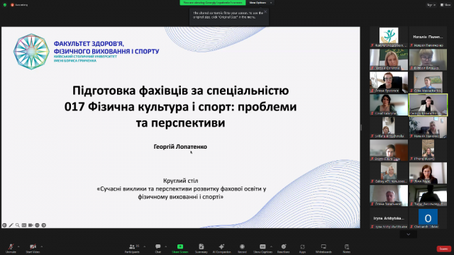 Круглий стіл розпочався з інформаційної доповіді декана Факультету здоров'я, фізичного виховання і спорту Георгія Лопатенка про стан розвитку освітньо-професійних програм зі спеціальності 017 "Фізична культура і спорт" у місті Київ та ключові проблеми сучасної освіти в галузі. Модерувала захід заступник декана з наукової роботи та менеджменту міжнародних проєктів - Ірина Грузевич.