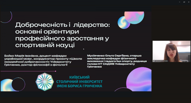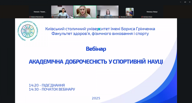 12 листопада 2025 року у Київському столичному університеті імені Бориса Грінченка відбувся VI Всеукраїнський вебінар «Академічна доброчесність у спортивній науці», приурочений до Всесвітнього дня науки в ім’я миру та розвитку. Захід був організований Факультетом здоров'я, фізичного виховання і спорту і спрямований на формування та підвищення культури академічної доброчесності.