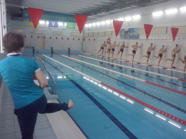 Тема заняття: «Полегшені способи плавання». Заняття відвідали заступник декана з науково-педагогічної та соціально-гуманітарної роботи Головач І.І., завідувач кафедри фізичного виховання і педагогіки спорту Ясько Л.В., доцент кафедри фізичного виховання і педагогіки спорту Сушко Р.О. Заняття було проведене з застосуванням ефективних методик навчання плаванню на високому професійному рівні.