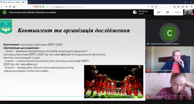 04 червня 2020 р. на кафедрі фізичного виховання і педагогіки спорту відбулася презентація наукових здобутків магістрантів спеціальності «017 Фізична культура і спорт» у рамках дисципліни «Науково-педагогічні дослідження у фізичному вихованні та спорті».