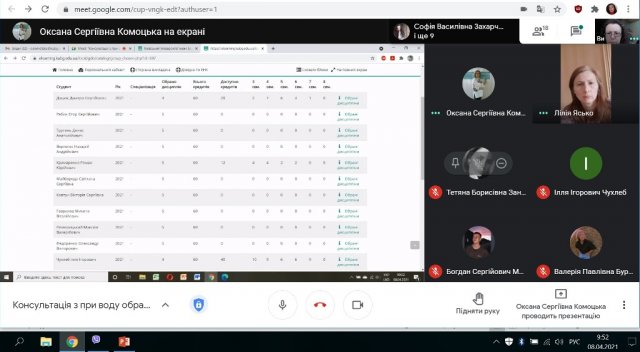 09 квітня 2021 р. відбувся навчально-методичний семінар по роботі з ресурсами е-середовища університету для студентів 1 курсу групи ФВб-1-20-4.0д, на якому студентів було ознайомлено з ресурсами е-середовища університету, зокрема електронним каталогом вибіркових дисциплін.
