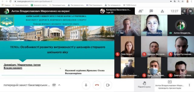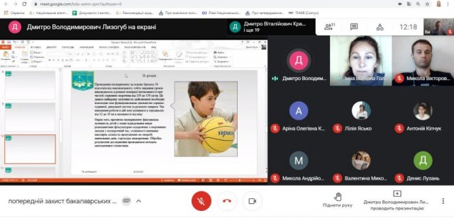 20 травня 2021 р. на кафедрі фізичного виховання і педагогіки спорту відбувся передзахист бакалаврських робіт студентів 4 курсу спеціальності «Фізична культура і спорт». Студенти презентували результати наукових досліджень та продемонстрували готовність до атестації. Бажаємо вдалого захисту!