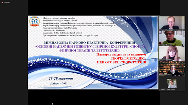 28- 29 жовтня 2021 р. професор кафедри фізичного виховання і педагогіки спорту Сушко Р.О. взяла участь у Міжнародній науково-практичній конференції Придніпровської державної академії фізичної культури і спорту "Основні напрямки розвитку фізичної культури, спорту, фізичної терапії та ерготерапії".