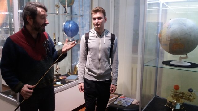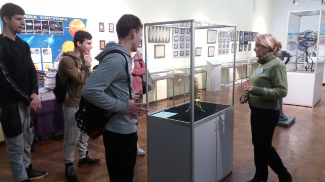 Студенти ознайомилися з виставкою "Погляд у Всесвіт: від міфів до науки". Це була унікальна фондова експозиція зразків метеоритів, старовинних та сучасних астрономічних приладів, раритетних карт та книг із приватної колекції Юрія Шевели.
