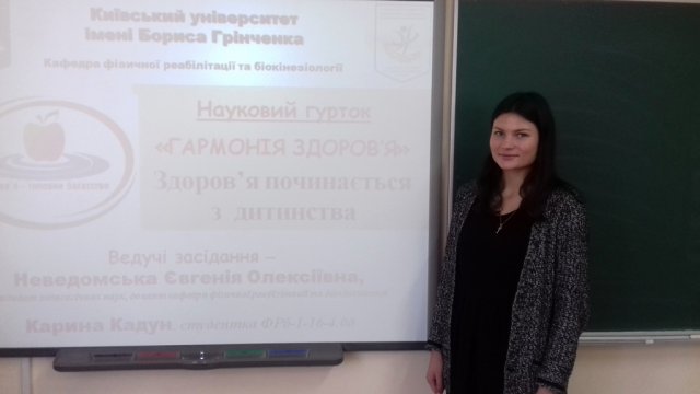 Ведуча засідання: Є.О. Неведомська, доцент кафедри фізичної реабілітації та біокінезіології.