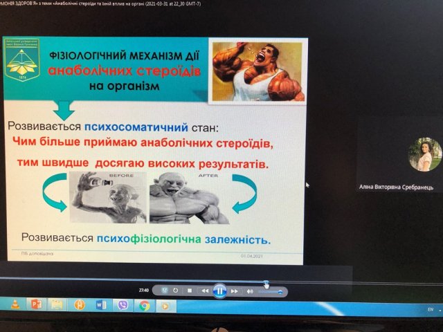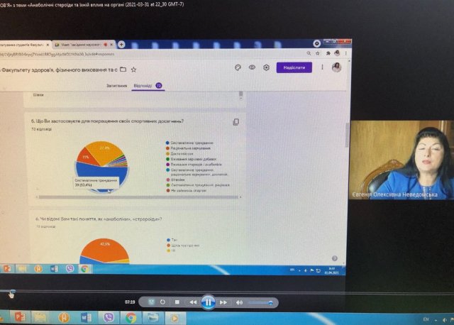 01 квітня 2021 року відбулося онлайн засідання наукового гуртка «ГАРМОНІЯ ЗДОРОВ’Я» для студентів Факультету здоров’я, фізичного виховання та спорту з теми «Анаболічні стероїди та їхній вплив на організм: плюси та мінуси».