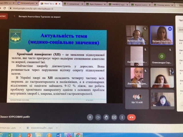 07 червня 2021 року відбувся online захист курсових робіт студентів академічної групи ФТЕб-1-18-4.0д спеціальності «Фізична терапія, ерготерапія». Мета досліджень студентів-третьокурсників полягала у теоретичному обґрунтуванні застосування засобів фізичної реабілітації при різних патологіях.