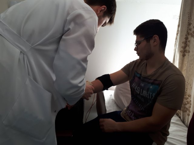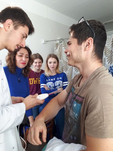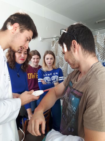 05 листопада 2019 року студенти 2 курсу групи ФТЕб-1-17.4.0 д разом з доцентом кафедри фізичної реабілітації та біокінезіології Харченко Г.Д. в рамках виїзного заняття з дисципліни «Преформовані фізичні чинники» відвідали «Київський міський клінічний госпіталь ветеранів війни».