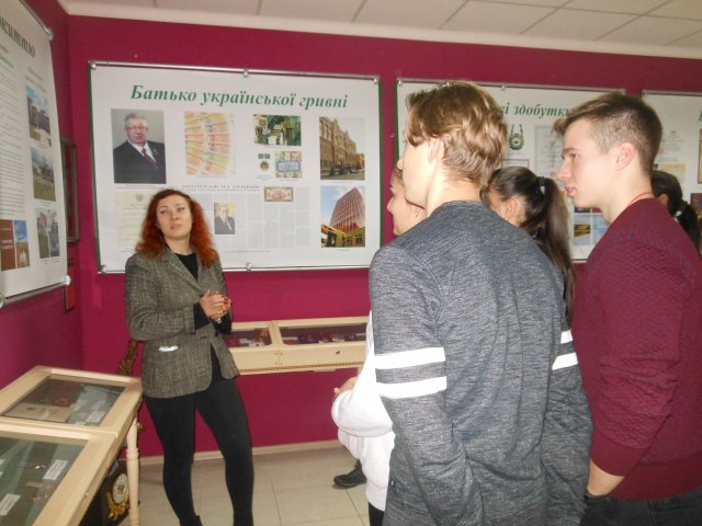 Під час екскурсії студенти дізналися про історію створення національної валюти гривні, переглянули відео "Чому почалася війна" та прослухали патріотичні пісні, автором яких є Володимир Матвієнко. Також отримали на згадку збірник віршів та пісень В. Матвієнка.