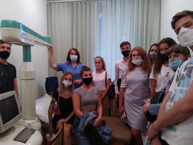 Студенти ознайомилися з роботою фізіотерапевтичного відділення. На занятті розглядалися питання про: електролікування; лікування постійним струмом; гальванізацію; медикаментозний електрофорез; апаратуру та методику проведення; діадинамотерапію; біофізичні процеси та лікувальні ефекти; показання та протипоказання до призначення.