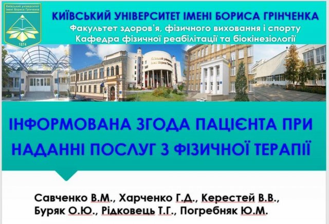 Савченко Валентин, завідувач кафедри фізичної реабілітації та біокінезіології Факультету здоров’я, фізичного виховання і спорту Київського університету імені Бориса Грінченка, доктор медичних наук, професор виступив з доповіддю «Інформована згода пацієнта при наданні послуг з фізичної терапії».