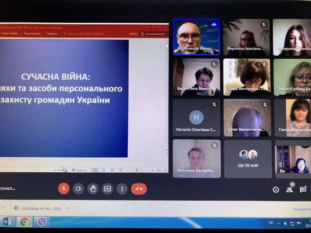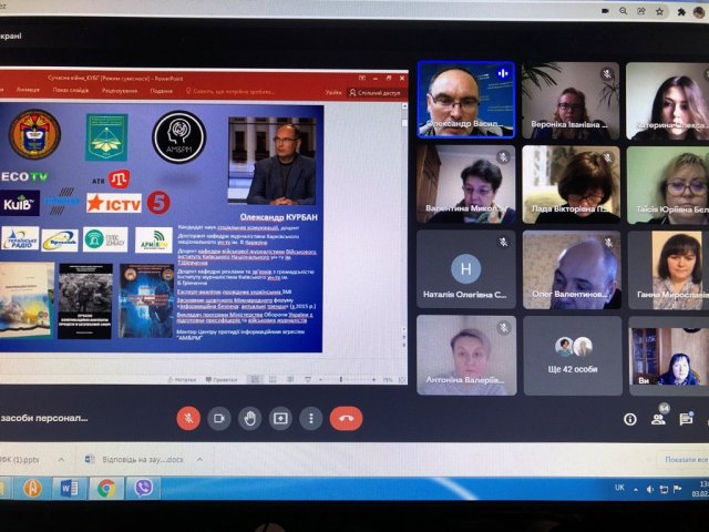 03 лютого 2022 року викладачі Факультету прослухали онлайн-лекцію «Сучасна війна: шляхи та засоби персонального захисту громадян України», яку провів Курбан Олександр Васильович, доцент кафедри реклами та зв'язків з громадськістю Інституту журналістики нашого Університету.