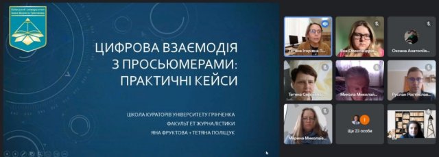 22 лютого 2023 р. відбувся онлайн-захід «Цифрова взаємодія з просьюмерами: практичні кейси», в якому взяли участь куратори нашого факультету (Наталія Петрова, Олеся Тимчик, Ольга Буряк).