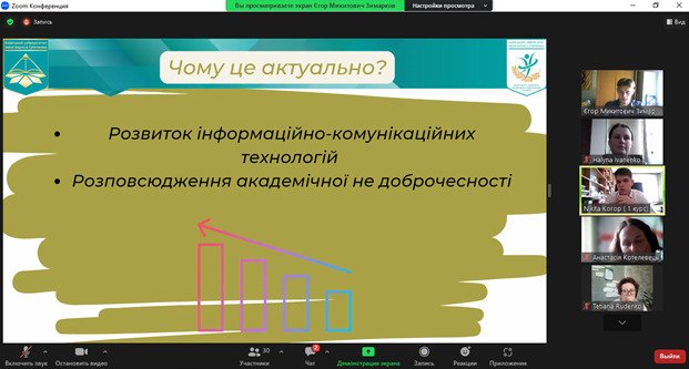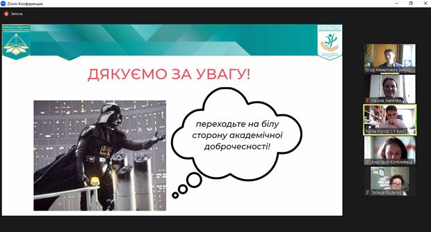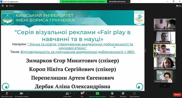 Здобувачами був представлений проєкт під назвою «Серія візуальної реклами «Fair play в навчанні та науці»». Студенти посіли ІІ місце серед наукових проєктів за напрямом «Наука та освіта: утвердження академічної доброчесності та наукової етики».