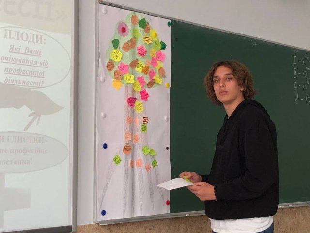 Кожний першокурсник розповів, чому вирішив обрати саме цю професію, про очікування від навчання в нашому Університеті та від майбутньої професійної діяльності. На завершення студенти створили символічне «Дерево професії».