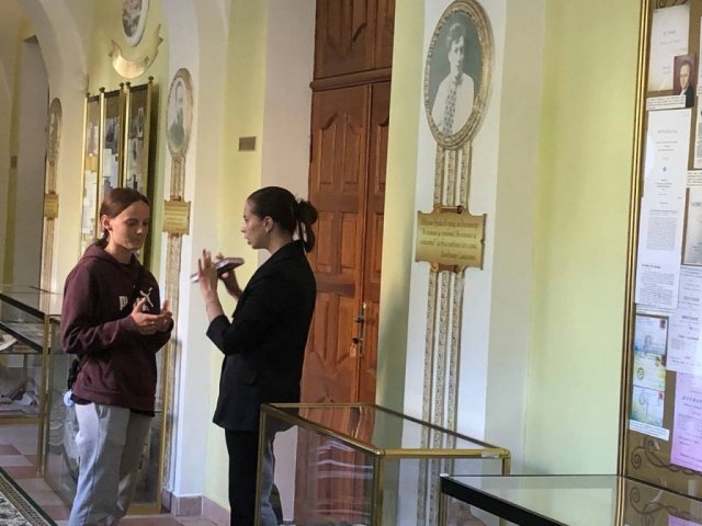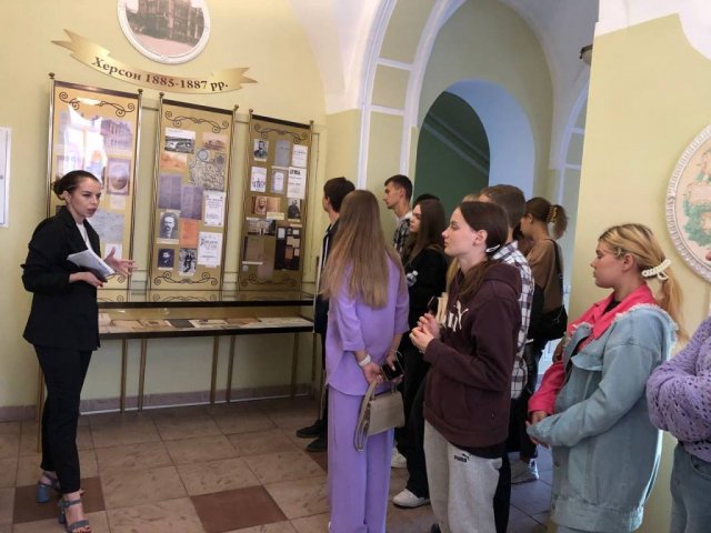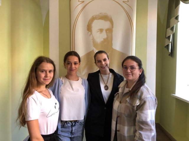Екскурсію натхненно провела директор Музею Бориса Грінченка Юлія Вікторівна Голубнича-Шленчак разом зі студентами-філологами 2-го курсу Факультету української філології, культури і мистецтва.