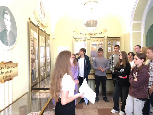 Студенти – майбутні фізичні терапевти під час екскурсії пізнали тернистий життєвий і творчий шлях Бориса Дмитровича Грінче́нка – українського письменника, укладача Словника української мови, педагога, лексикографа, літературознавця, етнографа, історика, публіциста, громадсько-культурного діяча, борця за українську незалежність та самобутність. Цікавими були розповіді екскурсоводів про наполегливість Грінченка у вчительській праці, про мужність під час ув'язнення, про любов до України. Наприкінці екскурсії був проведений для студентів квест з любов’ю і повагою до Великого Просвітителя.
