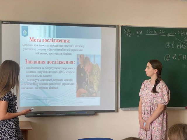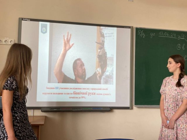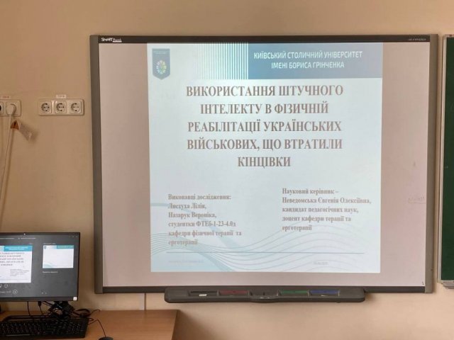 10 червня 2024 року в рамках засідання студентського наукового гуртка «Гармонія здоров’я», в якому взяли участь студенти академічної групи ФТЕб-1-23-4.0д, було заслухано доповідь Листухи Лілії та Назарук Вероніки, студенток академічної групи ФТЕб-1-23-4.0д, на тему «Використання штучного інтелекту в фізичній реабілітації українських військових, що втратили кінцівки».