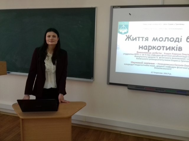 - «Життя молоді без наркотиків» (Неведомська Є.О., доцент кафедри фізичної реабілітації та біокінезіології Факультету здоров’я, фізичного виховання і спорту Київського університету імені Бориса Грінченка кандидат педагогічних наук, доцент;Кадун К.О., студентка кафедри фізичної реабілітації та біокінезіології Факультету здоров’я, фізичного виховання і спортуКиївського університету імені Бориса Грінченка).