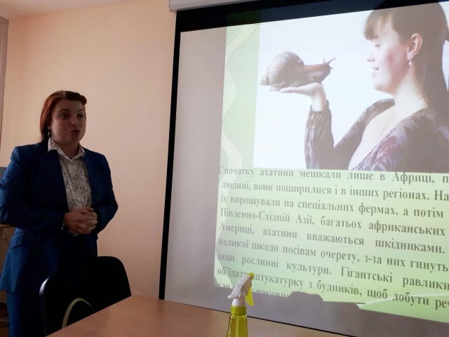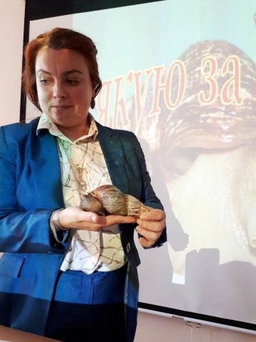 20 травня 2017 р. в рамках соціального проекту "З Києвом і для Києва" Полковенко О.В., к.б.н., доцент кафедри фізичної реабілітації та біокінезіологогії провела круглий стіл на тему "Равликотерапія в косметології", на якому відбулась демонтрація гігантського равлика ахатини.