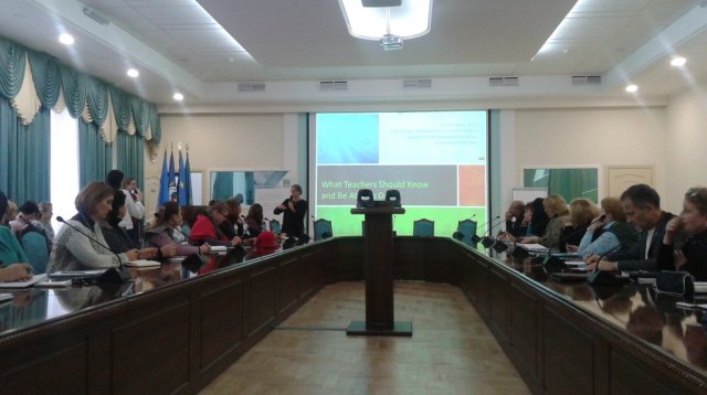 Д-р Ліза Марі Бленк презентувала американський досвід втілення в університетах принципів навчання, заснованого на дослідженнях та реалізації принципу 50% теорії – 50% практики в освітньому процесі університетів США.