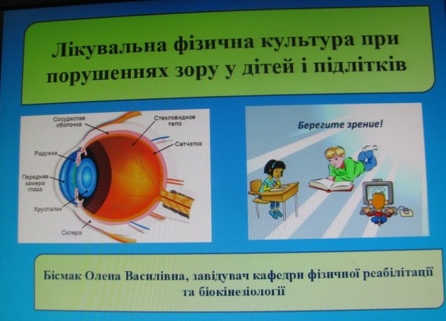 18 листопада 2017 року завідувач кафедри фізичної реабілітації та біокінезіології Бісмак О.В. провела тренінг «Лікувальна фізична культура при порушеннях зору у дітей і підлітків» в рамках Соціального проекту університету «З Києвом і для Києва».