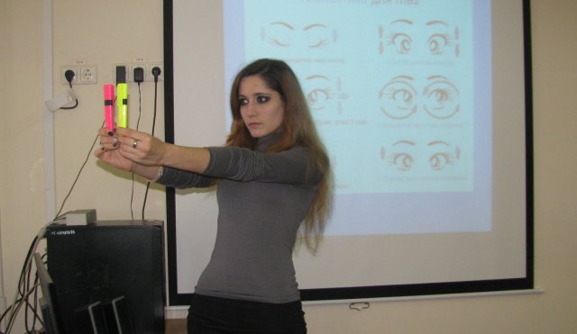 Основні питання, що розглядалися на тренінгу: сучасний стан проблеми порушень зору у дітей і підлітків; коригувальні фізичні вправи при порушеннях зору у дітей і підлітків; використання комплексної диференційованої профілактичної програми при вадах зору.