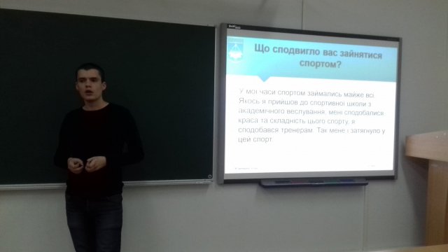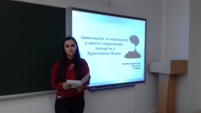 Студенти 5 курсу спеціальності «Фізична культура і спорт» підготували презентації інтерв'ю, відео-інтерв'ю з видатними спорстменами України про їх шлях до найвищих досягнень. Під час семінару обговорювались актуальні аксіологічні питання у сучасному спорті вищих досягнень.