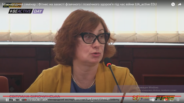 Під час свого виступу Світлана Бірючинська, віце президент Ukraine Active, міжнародний експерт, засновниця Smart Fitness Academy, старший викладач кафедри спорту та фітнесу Факультету здоров’я, фізичного виховання і спорту Київського університету імені Бориса Грінченка, зазначила, що «…саме для того щоб наша нація була спроможна зберігати і відстоювати своє вільне життя і перемагати загарбників, необхідно піклуватися про здоров’я населення. Жінка створює натхнення і забезпечує підтримку нашим мужнім чоловікам - захисникам, а також вона – берегиня нашого домашнього вогнища, тому тема фізичного і психологічного стану жінок є дуже важливою та актуальною!»
