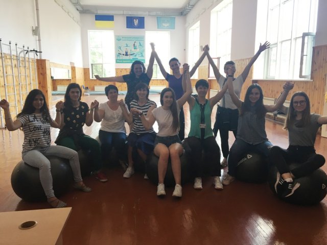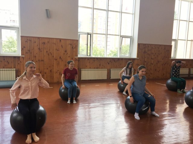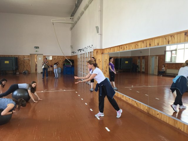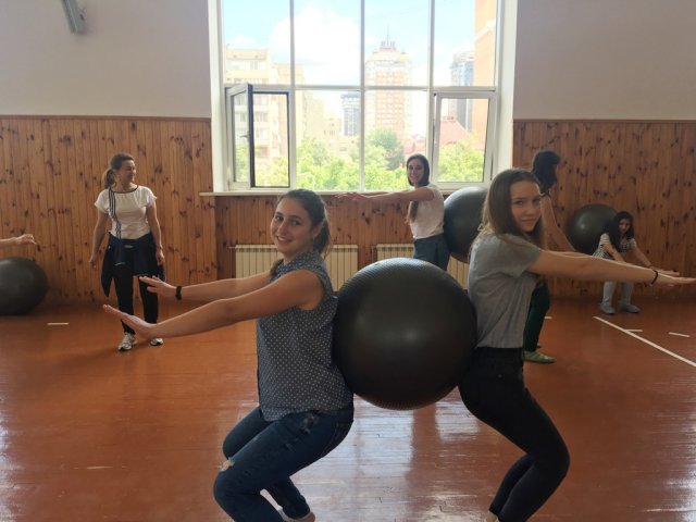 Для учнів був проведений майстер-клас професії «фітнес-тренер» із використанням вправ на степ-платформах, силових вправ з гантелями та гумовими еспандерами, вправ із фітбол - м’ячами.