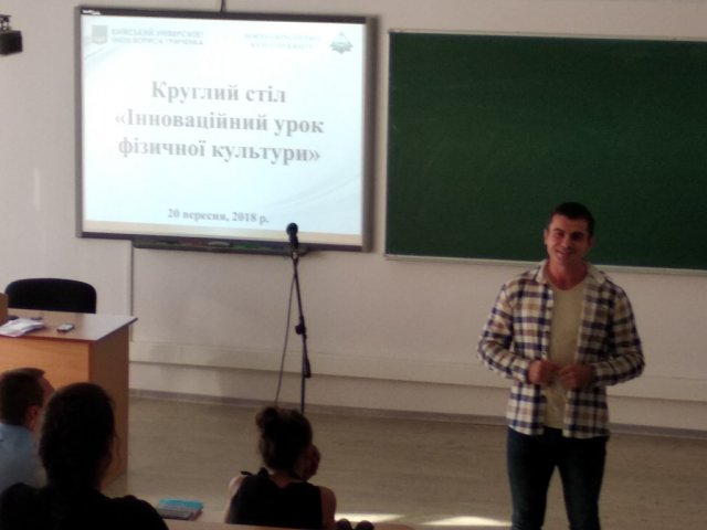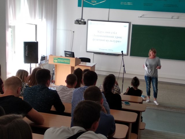 20 вересня 2018 р. кафедра фізичного виховання і педагогіки спорту та кафедра спорту та фітнесу Факультету здоров’я, фізичного виховання і спорту разом з Інститутом післядипломної освіти провели круглий стіл «Інноваційний урок фізичної культури» для студетнів 3 та 4 курсів спеціальності «Фізична культура і спорт», які навчаються за освітньою програмою «Фізичне виховання».
