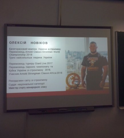 29 листопада 2018 р. в рамках дисципліни "Методика викладання спортивних дисциплін: Силові види спорту та методика їх викладання" для студентів факультету відбулася відкрита гостьова лекція чемпіона світу, переможця Arnold Classic Amateur Strongman World Championship 2018, тричі найсильнішої людини України, багаторазового чемпіону України Олексія Новікова та бронзового призеру чемпіонату світу 2014 року, майстру спорту Олександра Сташенко.