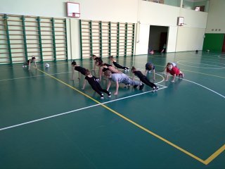- Оздоровче заняття з гімнастики разом з тренерами спортивного клубу «Геліос» (ст. викл. Євдокимова Л.Г., Киричок Ю.М.)