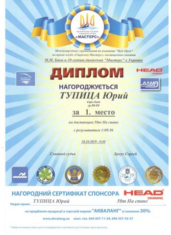 19-20 жовтня 2019 р. відбулися Міжнародні змагання з плавання «Kyiv Open» на призи клубу «Гаврилич Мастерс», присвячені пам’яті М.М. Баки і 30- річчю руху «Мастерс» в Україні. На цих змаганнях взяв участь Тупиця Юрій Іванович, старший викладач кафедри спорту та фітнесу, та виборов 3 золотих медалі!