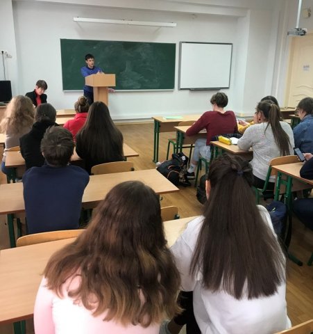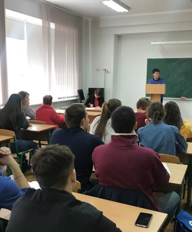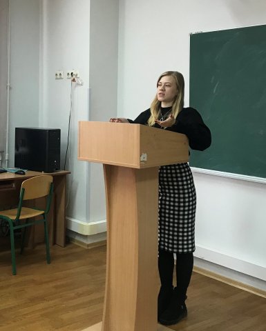 Тіптюк Юлія, чинний голова Наукового товариства Факультету, представила звіт роботи товариства за 2018-2019 н.р., а кандидати на виборні посади голови, заступника голови Наукового товариства Факультету представили свої презентації з перспективними планами діяльності.