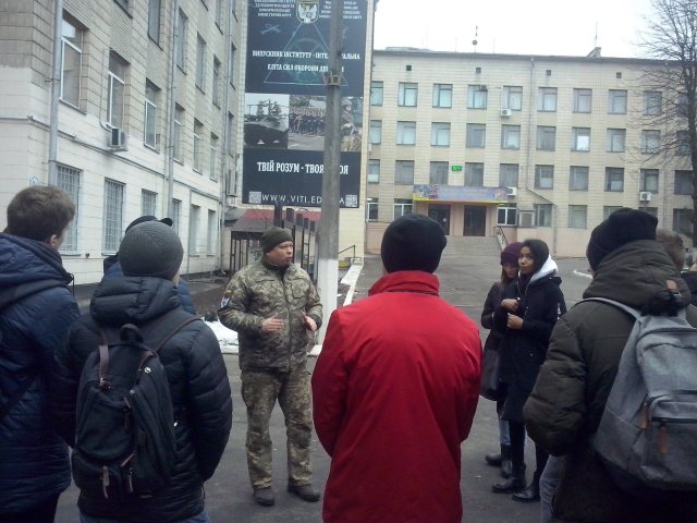 05 грудня 2019 р. для студентів 1 курсу освітньої програми «Фізичне виховання» відбулося виїзне заняття з дисципліни «Вступ до спеціальності» (викладач – Ясько Л.В., завідувач кафедри). В рамках ознайомлення з навчальним планом та можливістю обрання вибіркової спеціалізації "Захист вітчизни", студентам було надано інформацію про особливості військової підготовки майбутніх фахівців. Заняття відбулося на базі Військового інституту телекомунікацій та інформатизації імені Героїв Крут.