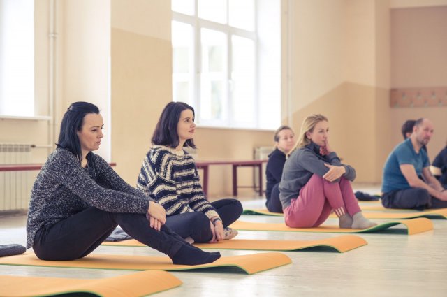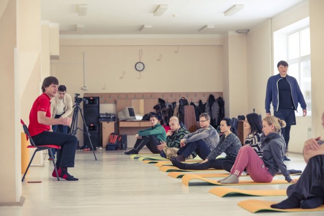 Тема: «Соматичний підхід. Вступ». На першому занятті учасники намагались відчути роботу свого центру, шукали відповіді на питання: «Як це? Рухатись повільно? З невеликим зусиллям? З маленькою амплітудою?».