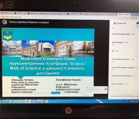 15 травня 2020 р. викладачі факультету (Ярмолюк О.В., Латишев М.В., Сушко Р.О., Петрова Н.В., Неведомська Є.О., Поляничко О.М. та ін.) взяли участь в онлайн-вебінарі «Використання наукометричних платформ Scopus і Web of Science: можливості для науковців», високопрофесійно проведеному директором бібліотеки Київського університету імені Бориса Грінченка, кандидатом наук із соціальних комунікацій Опришко Тетяною Сергіївною.