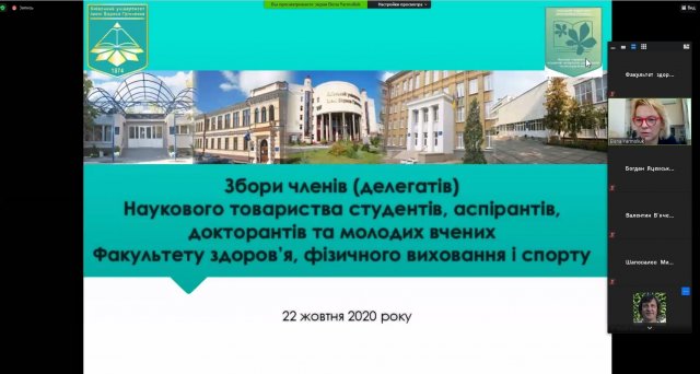 22 жовтня 2020 року відбулися Збори делегатів Наукового товариства студентів, аспірантів, докторантів та молодих вчених Факультету здоров’я, фізичного виховання і спорту Київського університету імені Бориса Грінченка.