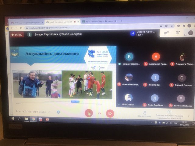 29 грудня 2020 Захист магістерських робіт 21-22 грудня 2020 р. на кафедрі фізичного виховання і педагогіки спорту відбулась атестація магістрів - захист магістерських робіт! Пишаємось здобутками наших студентів та вітаємо з успішним захистом!