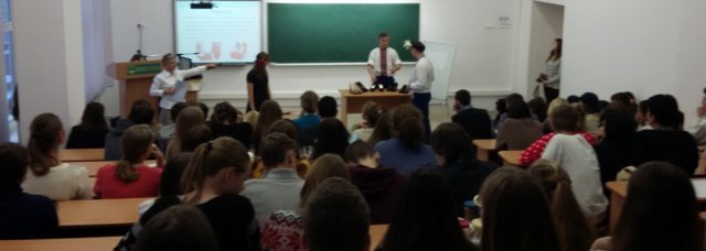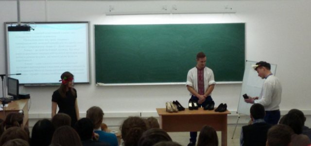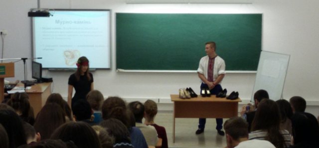 Команда Факультету здоров’я, фізичного виховання і спорту виступила з презентацією самостійно обраних слів, а також запросила глядачів потрапити в казку з головним героєм – юнаком, що шукав обручку з «мурно-каменем» (дорогоцінний камінь), черевики з «багдалю» (тонкої козячої шкіри) для своєї коханої, але й про «уважку» (знижку) не забував.