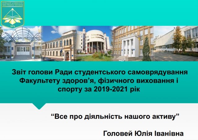 19 березня 2021 р. відбувся Звіт голови Ради студенського самоврядування Факультету здоров'я, фізичного виховання і спорту Головей Юлії за період роботи студеньского активу.