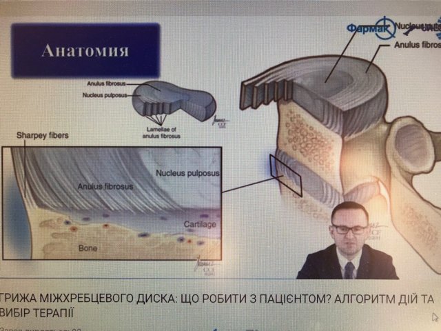 28 квітня 2021 року викладачі кафедри фізичної реабілітації та біокінезіології Тимчик Олеся Володимирівна, Харченко Галина Дмитрівна, Євгенія Олексіївна Неведомська та студенти 1-4 курсів (академічних груп ФТЕб-1-20-4.0д, ФТЕб-1-19-4.0д, ФТЕб-1-18-4.0д, ФТЕб-1-17-4.0д) взяли участь у вебінарі «ГРИЖА МІЖХРЕБЦЕВОГО ДИСКА: ЩО РОБИТИ З ПАЦІЄНТОМ? АЛГОРИТМ ДІЙ ТА ВИБІР ТЕРАПІЇ», який провів професор Яків Фіщенко, практикуючий лікар Інституту травматології та ортопедії НАМН України.