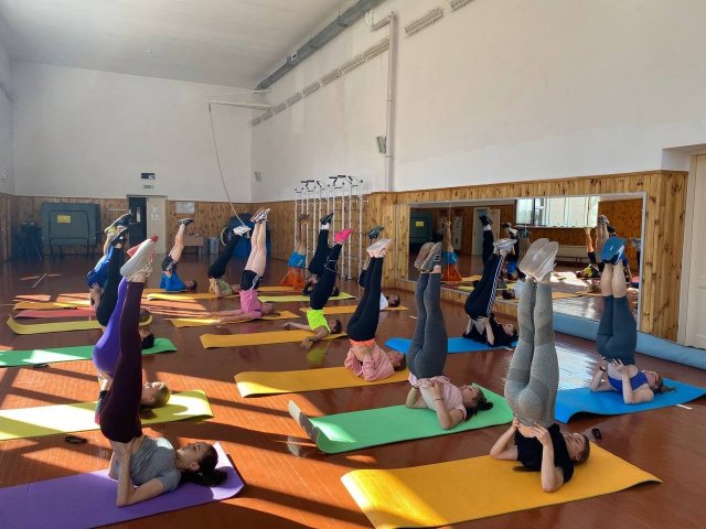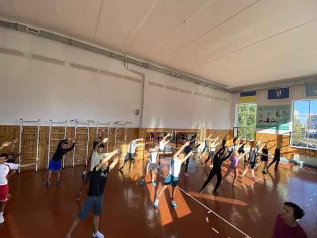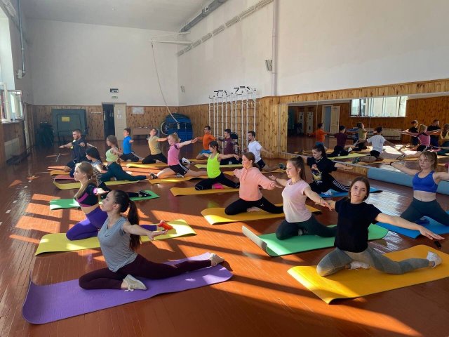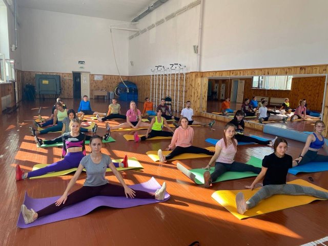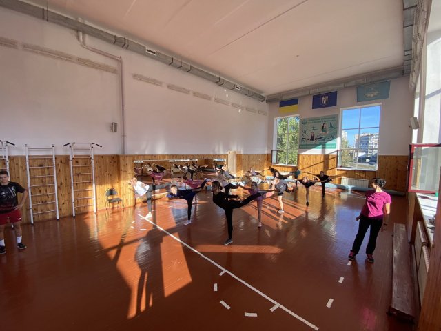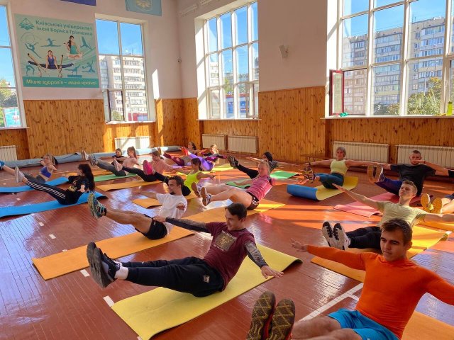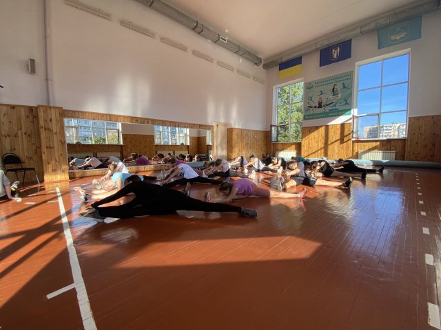 Студенти 1 курсу освітньої програми «Фітнес та рекреація» опановують практичні знання з дисципліни «Гімнастика і методика її викладання». Старанно виконують вправи з викладачами кафедри спорту та фітнесу Кожановою О.С. та Гавриловою Н.Г.