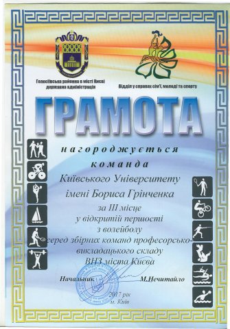 З 31 січня по 03 лютого 2017 року в приміщенні спортивного комплексу Національного університету біоресурсів і природокористування України відбулася відкрита першість з волейболу серед збірних команд професорсько-викладацького складу вищих навчальних закладів міста Києва.