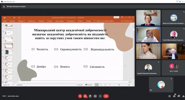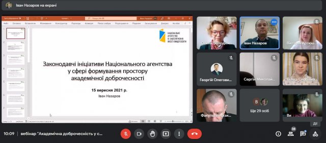 Учасники вебінару подискутували про заходи, які спрямовані на зміну корпоративної культури дослідників і впровадження форм стимулювання дотримання академічної доброчесності серед здобувачів вищої освіти.