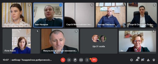 30 листопада 2021 року на Факультеті здоров’я, фізичного виховання і спорту вдруге був проведений вебінар «Академічна доброчесність у спортивній науці». Формат заходу передбачав презентацію основних положень системи сприяння академічній доброчесності у закладах вищої освіти, етики академічних взаємовідносин і культури учасників освітньо-наукової діяльності в університеті, обмін досвідом у впровадженні проєктів академічної доброчесності у закладах освіти.